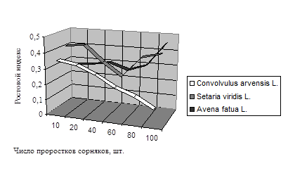 4. В комплексе коротковегетирующих сорняков для адаптивно–ландшафтного земледелия наиболее опасны эфемероидные растения, такие как - Myosotisarvensis, Hyoscyamusniger, Lepidiumruderale, Euforbiavirgata. По мере минимизации зяблевой обработки увеличивается количество видов, способных в течение вегетационного периода образовывать две генерации побегов и листьев. На сроки и интенсивность развития второй генерации побегов и листьев наибольшее влияние оказывают гидротермические условия. Третья генерация листьев и побегов не развивается.