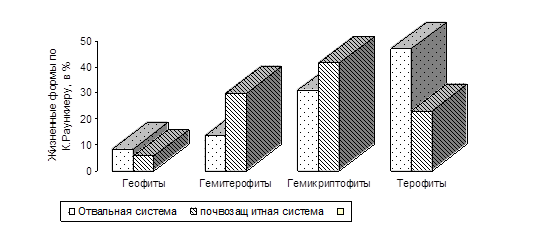 Выяснилось, что по характеру перезимовки при почвозащитном земледелии летнезеленые сорные растения составляют 64,1 %, зимнезеленые – 27,0 %, вечнозеленые – 8,9 %. Количество летнезеленых сорных растений уменьшается по мере минимизации обработок почвы, что связано с большими конкурентными способностями зимнезеленых и вечнозеленых сорняков. Вечнозеленые растения чаще всего укоренялись на вариантах с нулевой зяблевой обработкой и полностью отсутствовали на минимальной обработке.