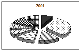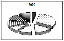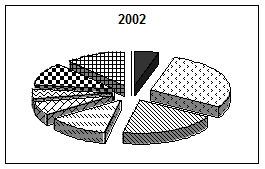 Рис. 3. Долевое участие ассоциаций сорного сообщества зернопарового севооборота и бессменной пшеницы в ходе сукцессии на вариантах без зяблевой обработки почвы при полном комплексе химической нагрузки посевов:1 - Lactucetum-tataricae; 2 - Lathyro-Lactucetumtataricae; 3 - Cannabio-Sinapetum; 4 - Galeopsetumbifidae; 5 - Lactuco-Artemisietumaustriacae; 6 - Cirsio-Potentilletumimpolitae; 7 - Lactuco-Carduetumcrispi; 8 - Matricario-Taraxacetumofficinalis.