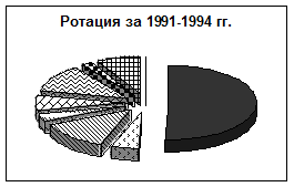 Сукцессии сообщества сорных растений в почвозащитном земледелии протекают в соответствии с моделью толерантности, когда за счет повышения общего уровня конкуренции и дифференциации ниш виды сегетальной ориентации постепенно вытесняются видами естественных сообществ гемикриптофитами и гемитерофитами. Сукцессионные процессы в зернопаровом севообороте проследили на примере ассоциации Lactucetum-tataricae. Это типичное сообщество сорных растений на эталонных вариантах без зяблевой обработки почвы и полным комплексом химической нагрузки посевов занимает в ротацию (1991-1994) 51% от общего обилия видов, с большим перевесом геофитов и терофитов в своем составе (до 67%). В ротацию за 1995-1998 годы продолжалось постепенное снижение доли ассоциации Lactucetum-tataricae в засорении рассматриваемых эталонных вариантов и наблюдается перераспределение экологических ниш. К концу ротации 1999-2002 гг. уже не отмечалось явного преобладания ни у одной растительной ассоциации, в то время как доля гемикриптофитов по отношению к остальным группам сорняков составила 71% (рис.3).
