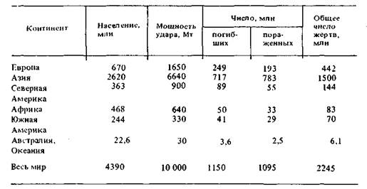 Особенно тяжелые последствия возникнут в случае тотальной ядерной войны. Оценки этих потерь приведены в работе Л.А. Ильина (табл. 1.1).