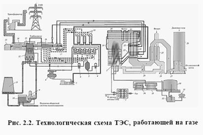Основными элементами рассматриваемой электростанции являются котельная установка, производящая пар высоких параметров; турбинная или паротурбинная установка, преобразующая теплоту пара в механическую энергию вращения ротора турбоагрегата, и электрические устройства (электрогенератор, трансформатор и т.д.), обеспечивающие выработку электроэнергии.