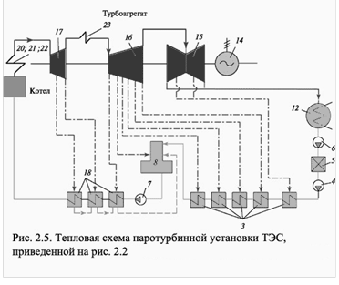 Кроме перечисленных элементов, реальная ПТУ дополнительно содержит большое число насосов, теплообменников и других аппаратов, необходимых для повышения ее эффективности.