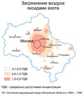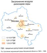 В Подмосковье и Москве наблюдается активное загрязнение атмосферы твердыми веществами (зола, сажа, пыль и др.) и газами (сернистый ангидрид, окись углерода, окислы азота, углеводороды, аммиак, хлор и др.). Результатом этого являются кислотные дожди.