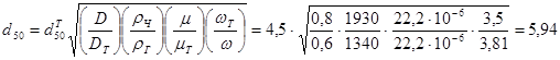 7. Приняв по таблице 2.8 два параметра, характеризующих эффективность выбранного типа циклона, определяем значение параметра d50