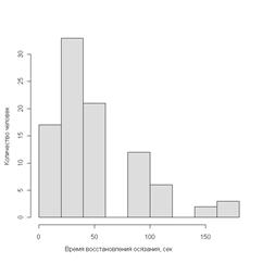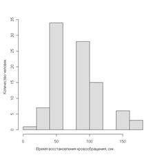Наши данные (ВВ кровообращения и ВВ осязания, в секундах) мы обработали в программе «R». Для сравнения двух указанных выше параметров мы использовали тест Стьюдента для параметрических данных; для выяснения степени корреляции – корреляционный тест Пирсона.
