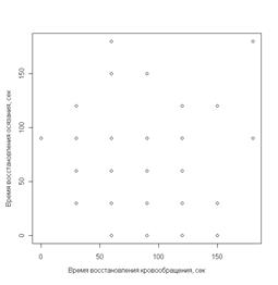 1) Выявление зависимости времени восстановления (ВВ) кровообращения от времени восстановления осязания: