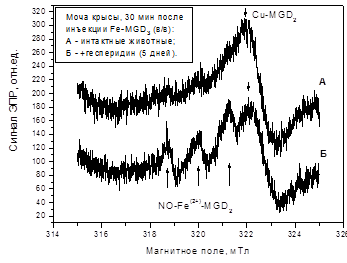 Методом ЭПР показано повышение под влиянием флавоноидов содержания NO в норме, и его снижение в условиях индукции окислительного стресса введением СС14