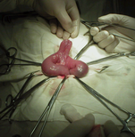 Рис. 1, 2. Дивертикул Меккеля во время операции.