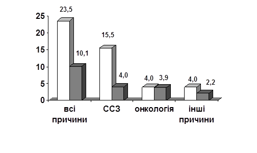 З кінця 60-х років смертність від CCЗ в Україні неухильно підвищується: за минуле десятиріччя вона зросла майже на 40 % і складає 72 % в структурі загальної смертності жінок, в той час як у чоловічого населення цей показник становить 54 % (Гайдаєв Ю.О., Коваленко В.М., 2007). На жаль, наша країна посідає одне із перших місць у світі за рівнем смертності від серцево-судинної патології.