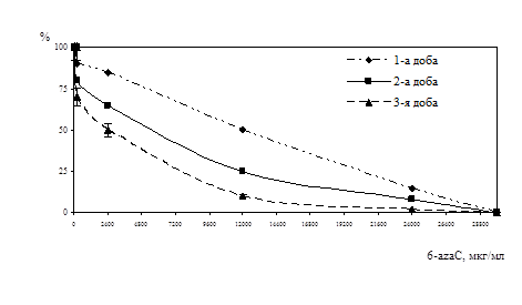 по осі абсцис – концентрація 6-azaC, мкг/мл.