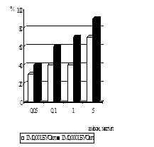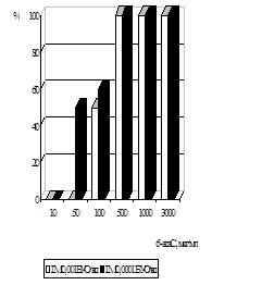 ) у терапевтичній схемі застосування при ІМ 0,001 БУО/кл відповідала 100 мкг/мл, при ІМ 0,0001 БУО/кл – ED50