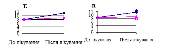 Через 12 тижнів лікування симвастатином спостерігалась значна позитивна динаміка з боку ліпідного профілю. 15 хворих (75%) досягли рекомендованого цільового рівня ЗХС <4,5 ммоль/л, 14(70%) – рекомендованого цільового рівня ХС ЛПВЩ (для жінок – >1,3 ммоль/л і чоловіків – >1 ммоль/л) та 15(75%) – рекомендованого цільового рівня ХС ЛПНЩ <2,6 ммоль/л. Слід зазначити, що на фоні лікування ефективність прийому 10-20 мг симвастатину проявлялася у достовірному зниженні рівня всіх ліпідних фракцій наприкінці 8 тижня, окрім ХС ЛПДНЩ, які достовірно змінились лише з 12 тижня.За нашою думкою, дане зниження показників ліпідного профілю наприкінці 8 тижня може бути критерієм ранньої ефективності препарату за період спостереження.