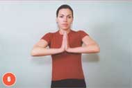 Они помогают укрепить грудные мышцы, поддерживающие молочные железы, масса которых во время беременности существенно увеличивается. Одно из возможных упражнений: соедините ладони на уровне груди (дыхание не задерживать), с силой надавите ладонями друг на друга, досчитайте до пяти, после этого расслабьтесь (см. фото 6). Это упражнение можно выполнять до 100 раз в день (разумеется, количество повторов нужно наращивать постепенно).