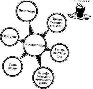 Рис. I. Первичные функциональные сдвиги при кровопотере, направленные на компенсацию сниженного ОЦК.
