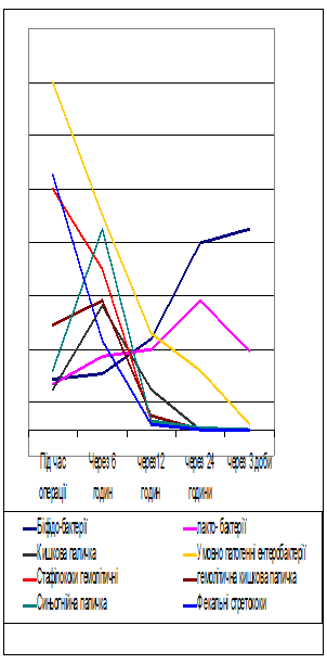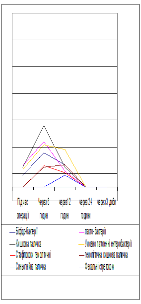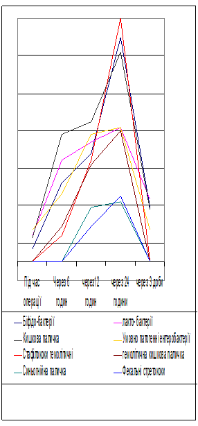 Кількість умовно-патогенних ентеробактерій – клебсієл, ентеробактера, цітробактера вже під час втручання становила 1,3х102