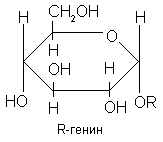 Гликозиды - это природные углеводосодержащие вещества органического характера, преимущественно растительного происхождения. В состав молекулы гликозидов входит сахар и несахаристая часть - агликон, или генин. Греческая приставка "а" означает отрицание, агликон в переводе означает "несахар". Агликон и сахар соединены между собой связью, подобной сложноэфирной, поэтому молекула гликозида легко расщепляется в присутствии воды под влиянием энзимов (ферментов), содержащихся в этих растениях. Формулу гликозида можно представить следующим образом [11]: