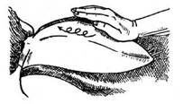 Граблеподібне поглажування (мал. 3) виконується подушечками чотирьох пальців, сильно розведеними в сторони. Прийом проводиться найчастіше обома руками, рідше однієї.