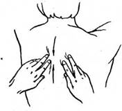 Після виконання даного прийому можна переходити до масування лопаток. Масування виробляється чотирма пальцями, великий палець у цьому не приймає участі. Потім прийом виконується великим пальцем, яким розминають потрібні зони.