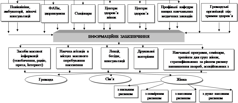 - схеми інформаційно-освітнього забезпечення жінок медико-санітарними знаннями з профілактики патологічних станів і хвороб, що супроводжують менопаузу;