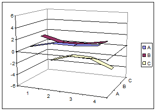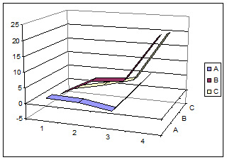 Тут і далі на осі абсцис позначені етапи хірургічного втручання для груп А, В і С: