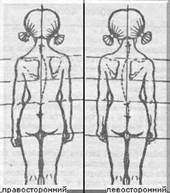 Грудной сколиоз. Вершина искривления позвоночника при грудном сколиозе находится на уровне восьмого-девятого грудных позвонков. Искривления бывают право- и левосторонние (рис 1.).