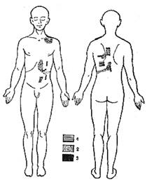 2. При массаже спины крайнюю осторожность следует проявлять при воздействии на подостные мышцы лопатки и на межлопаточную зону с левой стороны при язвенной болезни желудка и с правой стороны при язвенной болезни двенадцатиперстной кишки.