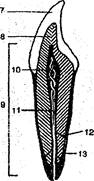 10—pulpa coronalis; 11 — pulpa radicularis;