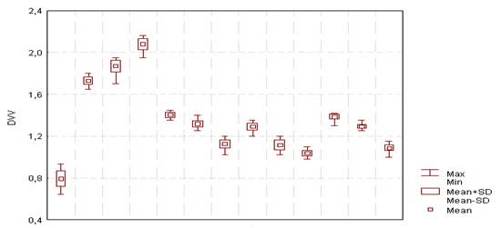 Mean - середня вибірки; Mean±SD - стандартне відхилення середньої; Max Min – максимальні та мінімальні значення вибірки.
