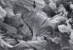 Рис. 3. Сканированная электронная микрофотография поверхности кальция оксалата, удаленного из мочевого пузыря 10-летнего кастрированного самца кота. Обратите внимание на сульфадиазиновый кристалл веерообразной формы (увеличение Х 2,880).