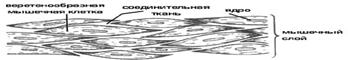 гладких мышц в коже, они расположены у основания волосяной сумки. Сокращаясь, эти мышцы поднимают волосы и выдавливают жир из сальной железы. В глазу вокруг зрачка расположены гладкие кольцевые и радиальные мышцы. Они все время работают: при ярком освещении кольцевые мышцы сужают зрачок, а в темноте сокращаются радиальные мышцы и зрачок расширяется. В стенках всех трубчатых органов - дыхательных путей, сосудов, пищеварительного тракта, мочеиспускательного канала и др. - есть слой гладкой мускулатуры. Под влиянием нервных импульсов она сокращается. Благодаря сокращению и расслаблению гладких клеток стенок кровеносных сосудов их просвет то сужается, то расширяется, что способствует распределению крови в организме. Гладкие мышцы пищевода, сокращаясь, проталкивают комок пищи или глоток воды в желудок. Сложные сплетения гладких мышечных клеток образуются в органах с широкой полостью - в желудке, мочевом пузыре, матке. Сокращение этих клеток вызывает сдавливание и сужение просвета органа. Сила каждого сокращения клеток ничтожна, т.к. они очень малы. Однако сложение сил целых пучков может создать сокращение огромной силы. Мощные сокращения создают ощущение сильной боли. Возбуждение в гладкой мускулатуре распространяется относительно медленно, что обусловливает медленное длительное сокращение мышцы и столь же длительный период расслабления. Мышцы способны также к самопроизвольным ритмическим сокращениям. Растяжение гладкой мускулатуры полого органа при наполнении его содержимым сразу же ведет к ее сокращению – так обеспечивается проталкивание содержимого дальше.