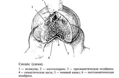 (в переводе с греческого - контакт; см. рис. 1). Именно синапс хранит многие тайны мозга. Нарушение этого контакта, например, веществами, блокирующими его работу, приводит к тяжелейшим последствиям для человека. Это место приложения действия наркотиков. Примеры будут приведены ниже, а сейчас рассмотрим, как устроен и как работает синапс.