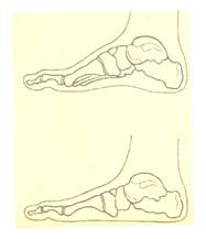 ПЛОСКОСТОПИЕ- опущение (уплощение) сводов стопы. Вызывает быструю утомляемость и боль при длительной ходьбе и стоянии. Лечение: массаж, специальная гимнастика, ношение особых вкладок в обувь (супинаторов) или ортопедической обуви, в тяжелых случаях - операция.