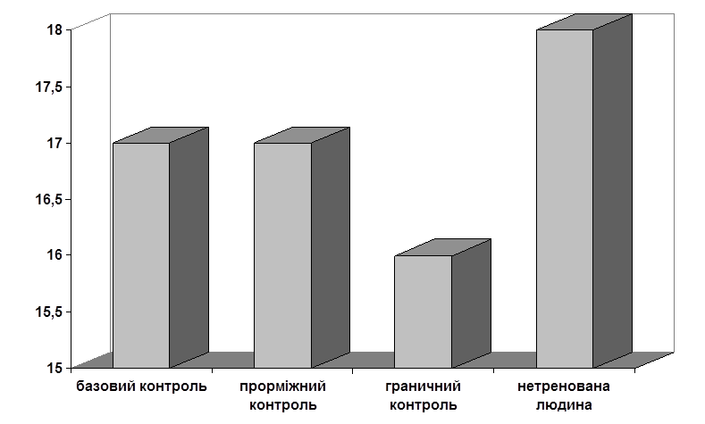 Рис. 1. Середні показники частоти серцевих скорочень (ЧСС) в спокої за 15 с. в досліджуваній групі