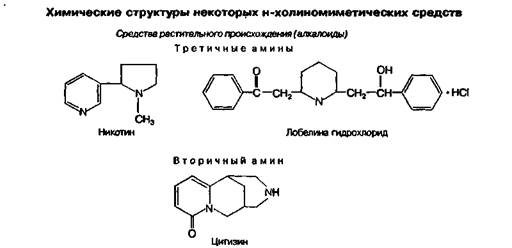 Рис.1 Химические структуры некоторых н-холиномиметических средств.