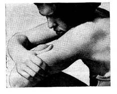 Щипцеподібним розтиранням обробляють сухожилля і голівки м'язів, що прилягають до суглоба.