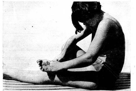 Масаж нижніх кінцівок, так само як і верхніх, починають із загального поглаживания широкими штрихами в напрямку від периферії до центра - від стопи до тулуба. Поглажування роблять двома руками, щільно обхоплюючи кистями кінцівка. Спочатку масажують одну ногу, погладжуючи внутрішню і задню поверхню, а потім - іншу ногу. Після цього нижні кінцівки масажують у такому плані: спочатку права і ліва стопи, потім гомілки і колінних суглобів, а потім уже стегна й область таза. Масаж стопи починають із поглажування двома руками в напрямку від пальців до гомілковостопного суглоба. Масажуючи праву стопу, права рука проходить по тильній поверхні стопи, ліва - рухається паралельно, впливаючи на підошву. Розтирання виконують з боку підошви гребнеподібним прийомом (рис. 7); на тильній поверхні застосовують розтирання кінцями пальців, штрихування і колоподібні розтирання пальцями з обтяженням.