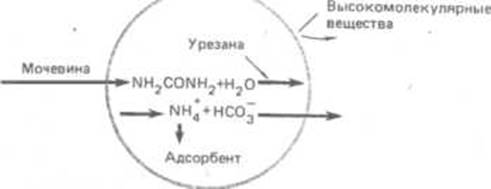 І все-таки діаліз не завжди задовольняє медиків: апарати досить громіздкі, швидкість виведення токсинів менше, ніж хотілося б, а сполукиз великою молекулярною масою взагалі не видаляються або видаляються дуже погано. Тому великий інтерес і медиків й інших фахівців викликавзапропонований в 60-х роках принципово новий спосіб витягу шкідливих речовин з біологічних середовищ. Мова йде про процес гемосорбції – видалення із крові токсинів шляхом пропущення крові через шар із сорбентом. Використання іммобілізованих фізіологічно активних речовин виявилосяперспективним і для виконання іншихдетоксикаційних функцій нирок. Наприклад, ту ж сечовину, що традиційно видаляютьгемодіалізом, можна успішно виводити із крові в так званій штучній клітині (мал. 1). Штучна клітина складається з оболонки-мембрани, проникної для низькомолекулярних речовин і непроникної для речовин полімерного характеру. Усередині перебуває водяний розчин ферменту – уреази, здатноїкаталізувати руйнування сечовини, і іонообмінна смола, сорбуюча іон амонію. Уперше така штучна клітина була створена відомим біохіміком Т. Чангом. Зараз не тільки створені більшескладні за будовою штучні клітини, але й у значній мірі просунулися роботи в області іммобілізації самих клітин. Уже синтезовані матеріали, у яких живі клітини нормально існують, розмножуються й виконують свої функції.