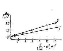 Определение константы диссоциации комплекса пероксидаза - антитела к пероксидазе в координатах Клотца: кривые 1 я 2