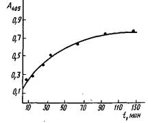 получена в предположении, что реакция антител с иммобилизованным антигеном достигает равновесия. Кинетика этого процесса представлена на рис., из которого видно, что время установления равновесия значительно больше используемого в эксперименте при определении константы. Поэтому полученное значение С