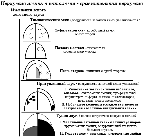 При выстукивании тканей различной плотности звук соответственно меняется, и чем ткань плотнее, тем тише перкуторный звук.