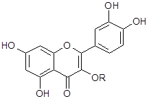 относится к биофлавоноидам. Практически нерастворим в воде; растворим в разбавленных растворах едких щелочей. R-остаток рамнозилглюкозы. [13].