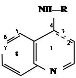 2. К хинолиновому ядру должна быть присоединена через аминогруппу боковая цепь (в положении 8 или 4).