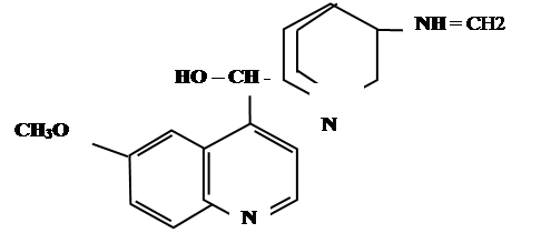 Алкалоид, содержащийся в коре различных видов хинного дерева. По химическому строению является [6′-метоксихинолил- (4′)]-[5-ви-нилхинуклидил- (2) ]-карбинолом: