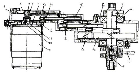 корпуса редуктора. Крутящий момент двигателя передается на редуктор через шестерню Zl