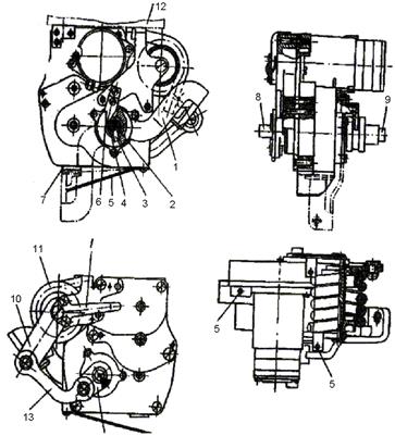 и обеспечивает тормозной момент на входном валу редуктора при выключенном электродвигателе. Механизм фиксации работает следующим образом. При подаче на двигатель напряжения питания в соответствующей полярности кулачки 10