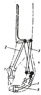 образуют механизм антипараллелограмма, неподвижным основанием которого является опорная шина 4.
