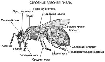 Стилеты представляют собой очень тонкие хитиновые иголочки с зазубринами на концах (рис.2); у рабочей пчелы стилеты имеют по 10 зазубрин, а у матки — по 3. Между узкими краевыми ребрышками, находящимися на нижней стороне стилетов, и салазками жала образуется канадец, до которому яд из ядоносного пузыря протекает в ранку, сделанную жалом. Чтобы не препятствовать свободному вытеканию яда в ранку, ребрышки на конце жала расходятся. Ядовыделительный аппарат состоит из двух ядовыделительных желез — большой и малой — и ядоносного пузыря. Большая ядовитая железа имеет вид тонкой длинной сильно извилистой трубки. Клетки ее внутренних стенок вырабатывают яд, который стекает в ядоносный пузырь. Проток ядоносного пузыря открывается выводным отверстием в грушевидное (колбовидное) расширение салазок, откуда яд по канальцу стекает к концу жала и попадает в ранку. Малая ядовитая железа помещается при впадении протока ядоносного пузыря в салазки жала. Она имеет вид загнутого на конце рукава; выделяемая ею жидкость имеет щелочной характер, она смешивается с жидкостью большой железы во время жаления. Ядоносный пузырь имеет грушевидную форму; в расширенный конец его впадает выводным отверстием большая ядовитая железа; противоположный конец его, сильно суживаясь и изгибаясь, образует выводной проток, впадающий в грушевидную (колбовидную) часть салазок жала. Процесс жаления осуществляется сильными мускулами, которые приводят в движение стилеты; двигаясь по салазкам взад и вперед, стилеты вонзаются в кожу врага. Ядовитая жидкость, попадающая вместе со стилетами в сделанную ранку, вызывает жгучую боль, воспаление и опухоль. В небольших дозах пчелиный яд для человека не опасен.