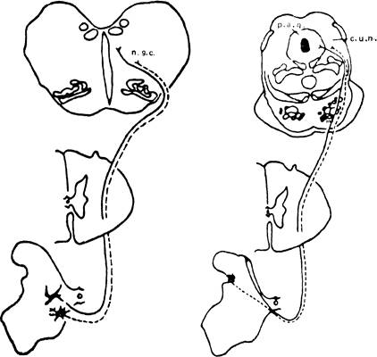 Рис. 8 - Схема спиноретикулярного тракта. n. g. с. — гигантоклеточное ядро.