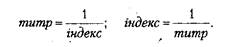 Індекс - величина, обернена титру, тому перерахунок його в індекс і навпаки можна здійснювати за формулою (для рідин):